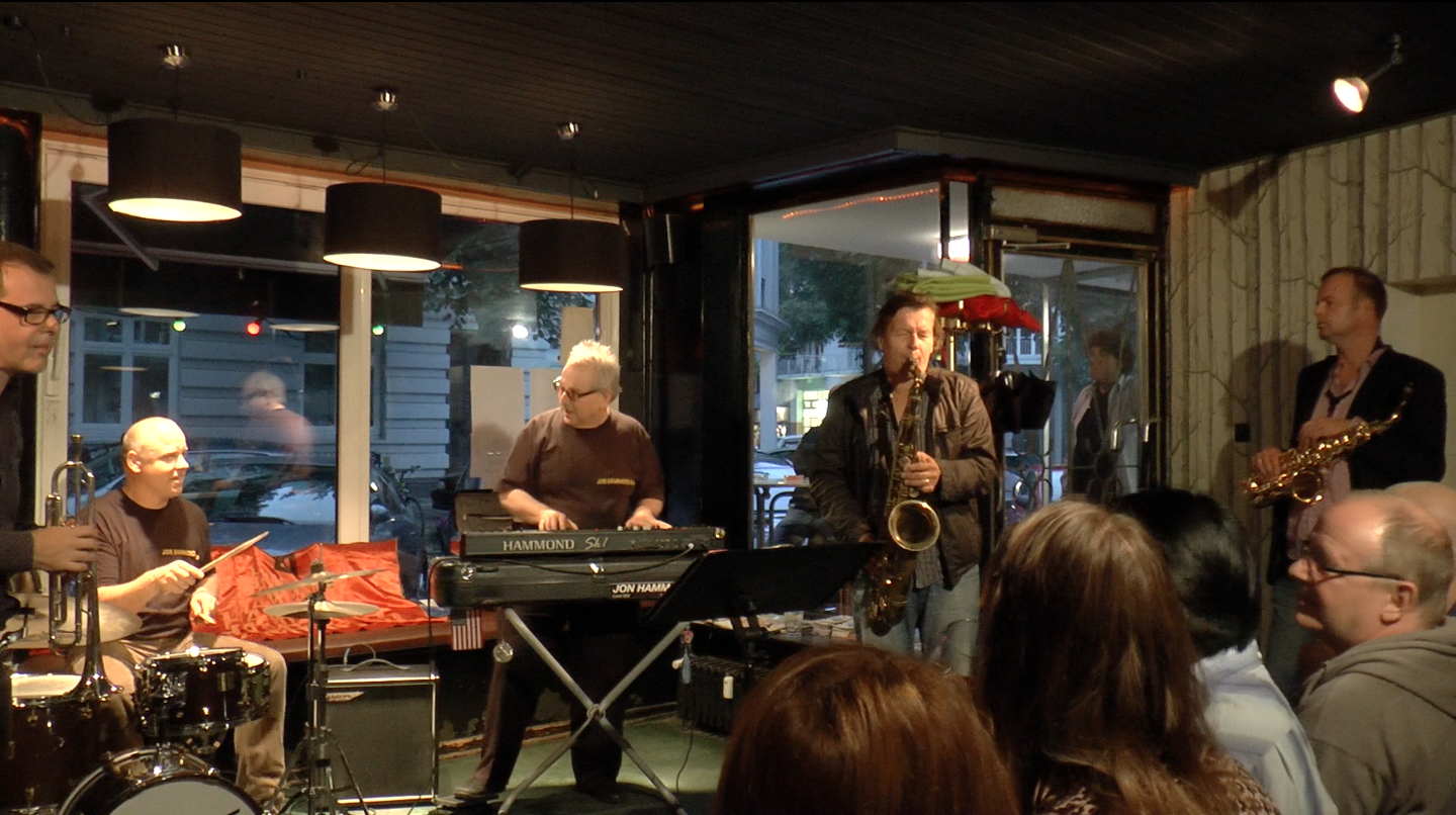 Hamburg, Germany -- Missing Man Formation - a concert for Lutz, opener blues Auster Bar Hamburg - Musicians: Frank Delle tenor sax, Heinz Lichius drums, Joe Berger guitar, Jon Hammond organ - concert honoring our dear friend Lutz Büchner the great saxophonist in the actual same place where we last played together with Family and Friends, amazing special night. Lutz is greatly missed! We honor him in music - Jon Hammond / Jon Hammond Band