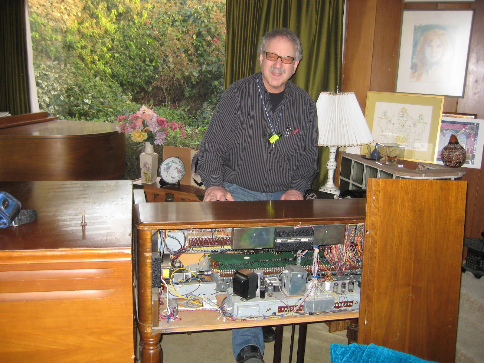 Bringing Back Sony Tape Recorder Audio Transfer Project Jon Hammond rock band Hades 1971 recordings Archive at CHRS Radio Clinic at California Historical Radio Society, Elmo disassembles Jon Hammond's TC-366 tape deck on the bench from Kozo Ohsone Sony Tape Recorder Division to play back 40 year old archive recording Berkeley El Cerrito based band HADES recorded live at Provo Park in Berkeley and at rehearsal garage on Carlson Blvd. Richmond recorded on a TC-366 sound on sound reel to reel tape deck, here is the machine on the bench with Elmo: