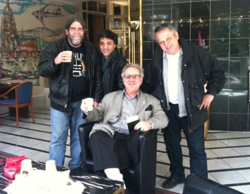 Earlier version of Hades Blues Works L to R: Jim Thorsen, Jon Hammond Greg Boykin drums R.I.P. Eddie Sanchez, Steve Wright picture outside Carlson Blvd. Richmond rehearsal space, Jerry Figone was manager at that time, road crew - Kent & Gary Leone: