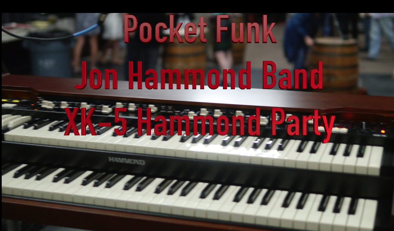 Jon Hammond Band at the Hammond Party for the new XK-5 Hammond organ, playing Jon's tune Pocket Funk in Full HighDef on the new prototype organ with Kayleigh Moyer on the Sleishman Drum Co Mothertone drums, Chuggy Carter congas GON BOPS, Joe Berger guitar, Jon Hammond at the XK5 (plays just like a B3 with Multi Contact keys!)