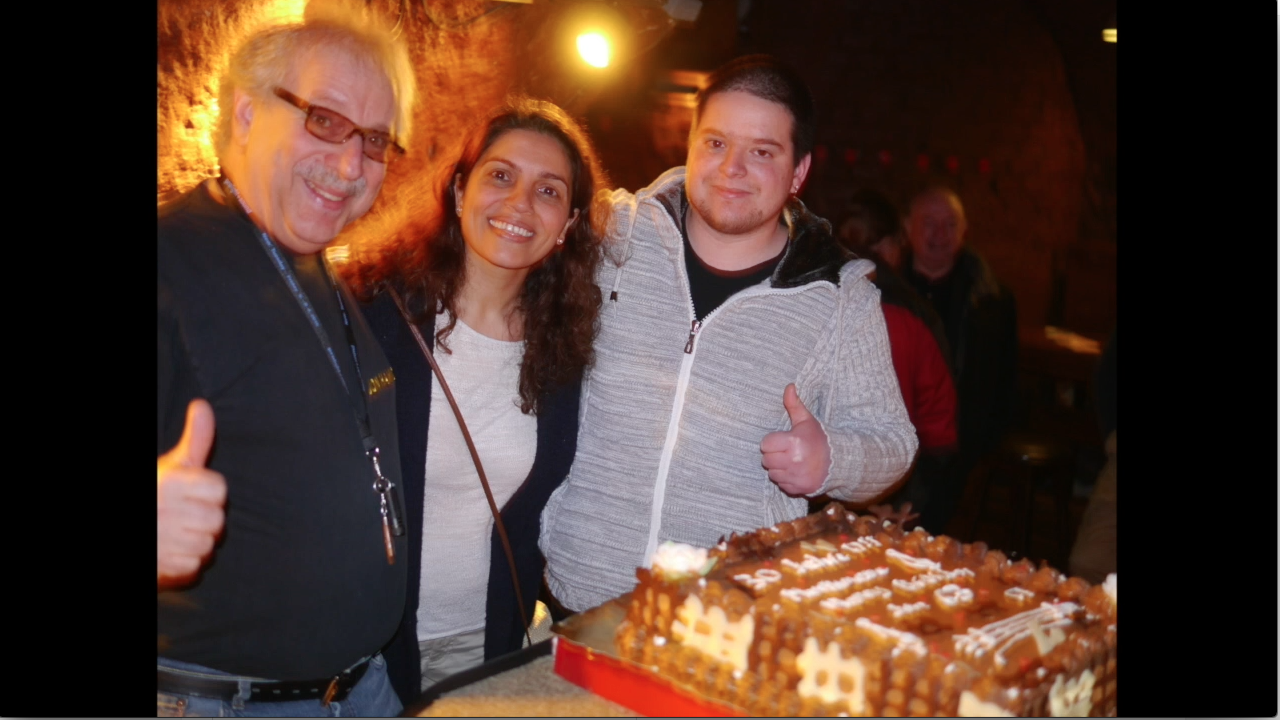 Frankfurt Germany -- Jon Hammond flanked by Ivana Petrof / Ivana Petrofová and Zuzana Petrof / Zuzana Ceralová Petrofová Celebrating 150