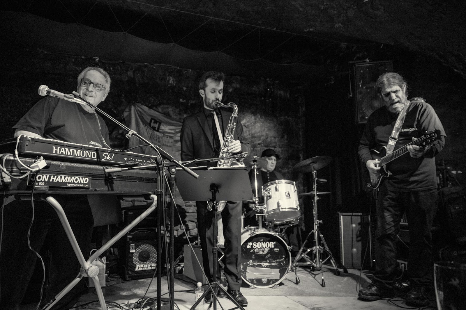 Melody Without Name Jon Hammond Band Jazzkeller Frankfurt - Note: Jon's organ is powered by Markbass Bass Amps house combo bass amp only - Joe Berger guitar, Peter Klohmann tenor saxophone, Giovanni Totò Gulino drums, Jon Hammond Sk1 Hammond organ - this is Jon Hammond and Joe Berger's 31st consecutive musikmesse traditional warm up party and Jon's 64th birthday party with many friends in the house in world famous jazzkeller Frankfurt
