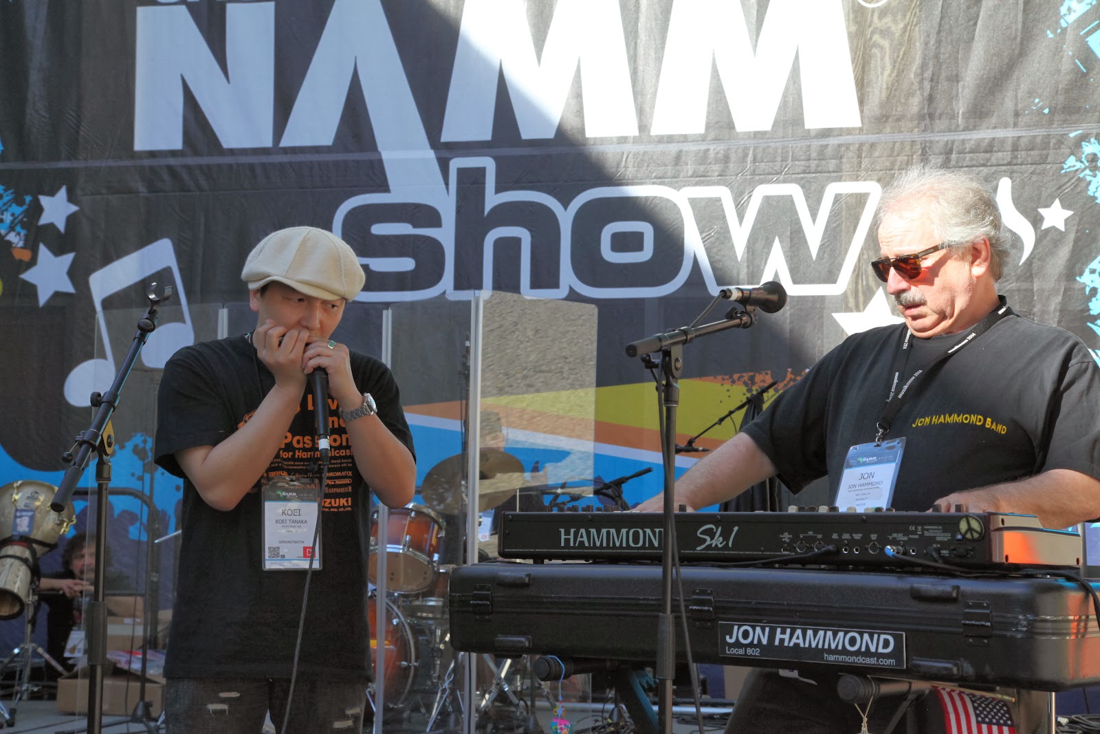 *Image 3: From Tokyo - Koei Tanaka / Koei Tanaka / 田中光栄 - fan site harmonica and Jon Hammond at the organ on NAMM Center Patio Stage - Thank you!!